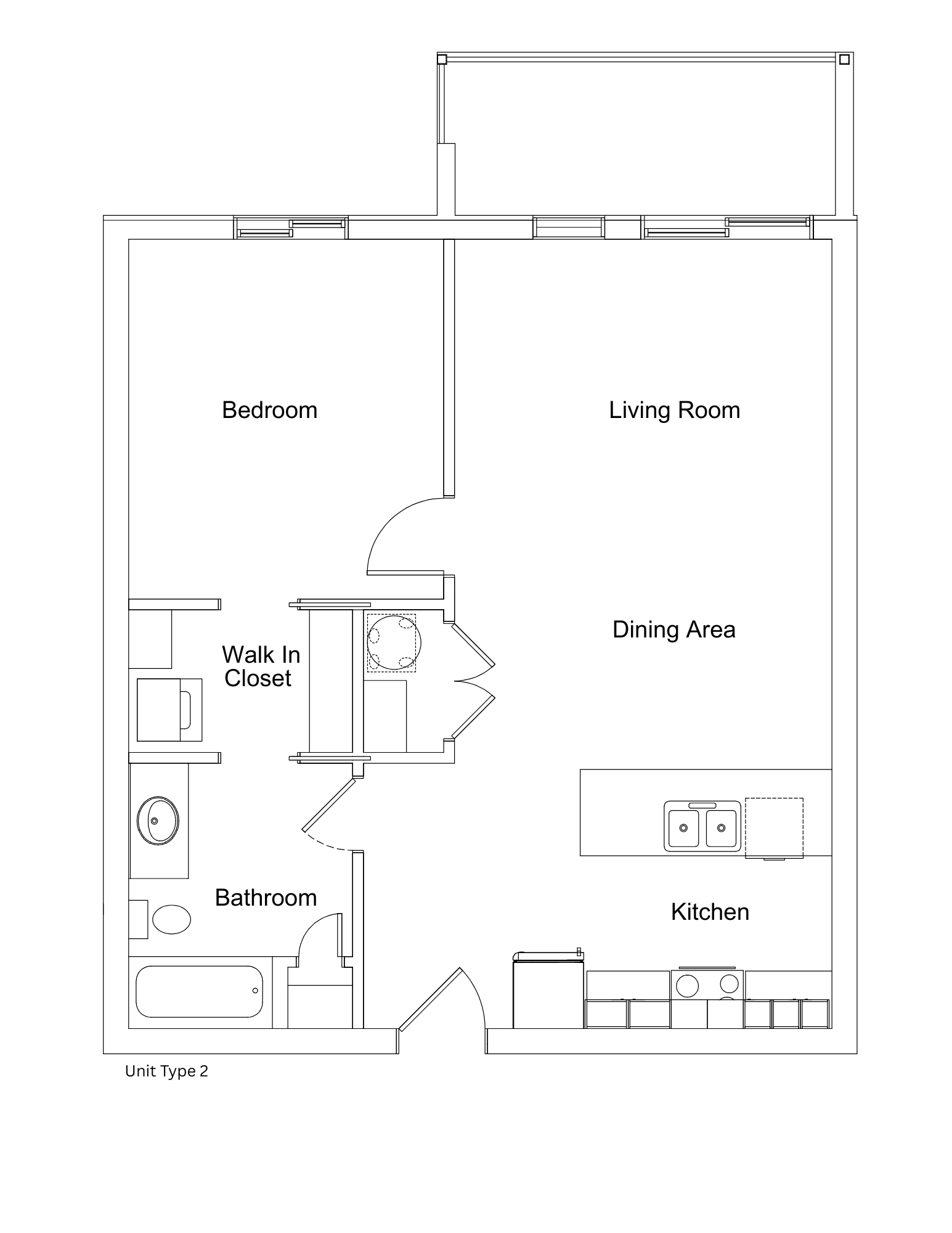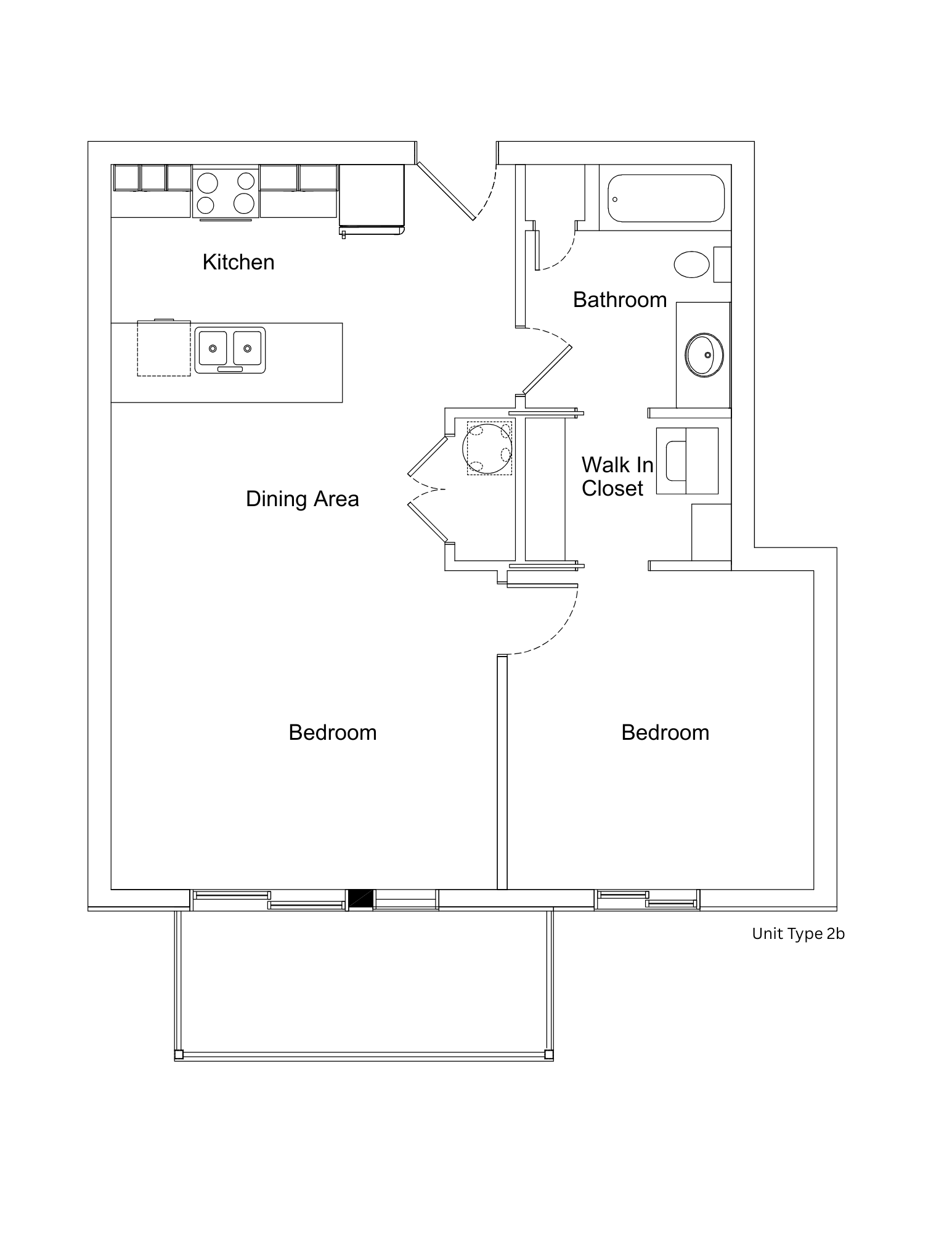 2 Bed / 1 Bath Unit