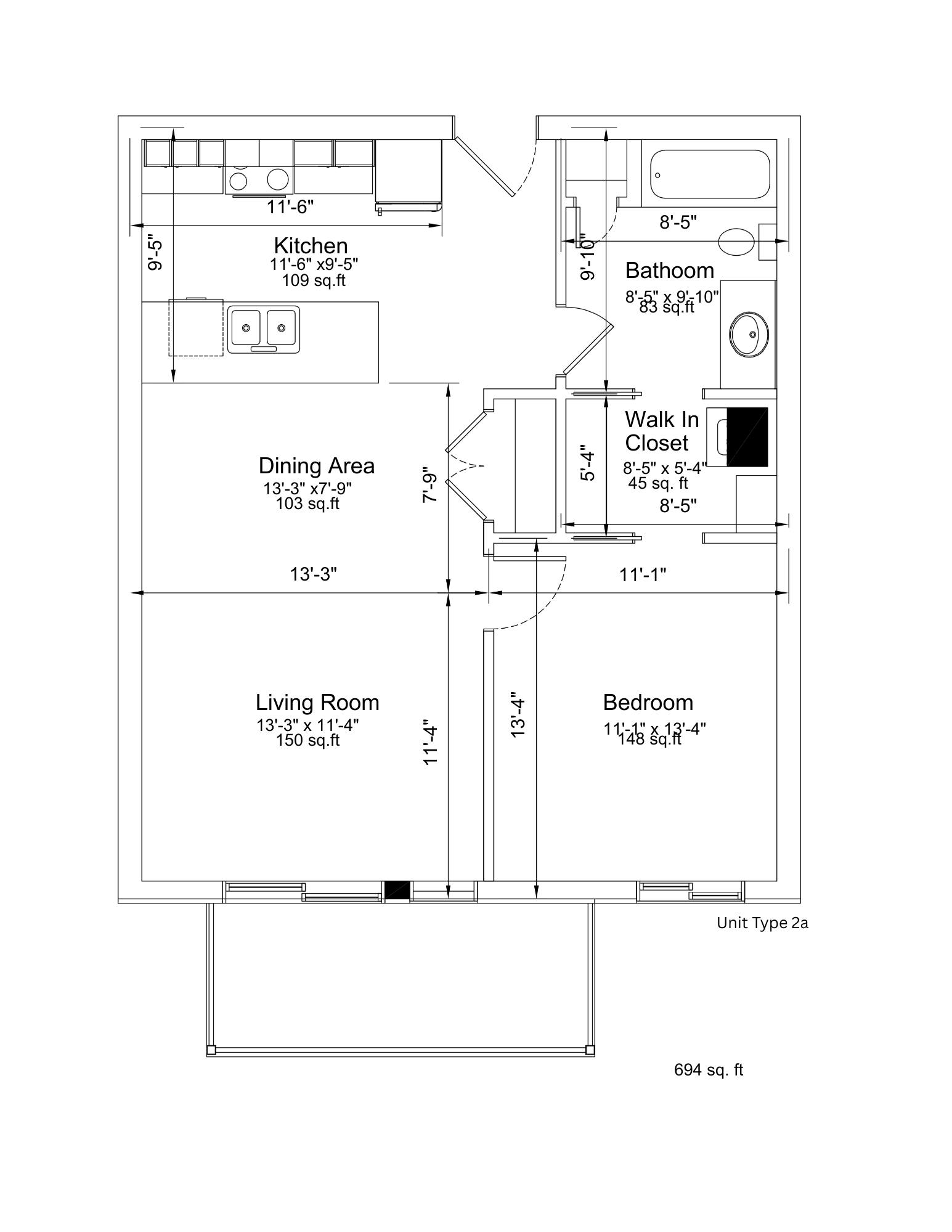 1 Bed / 1 Bath Unit